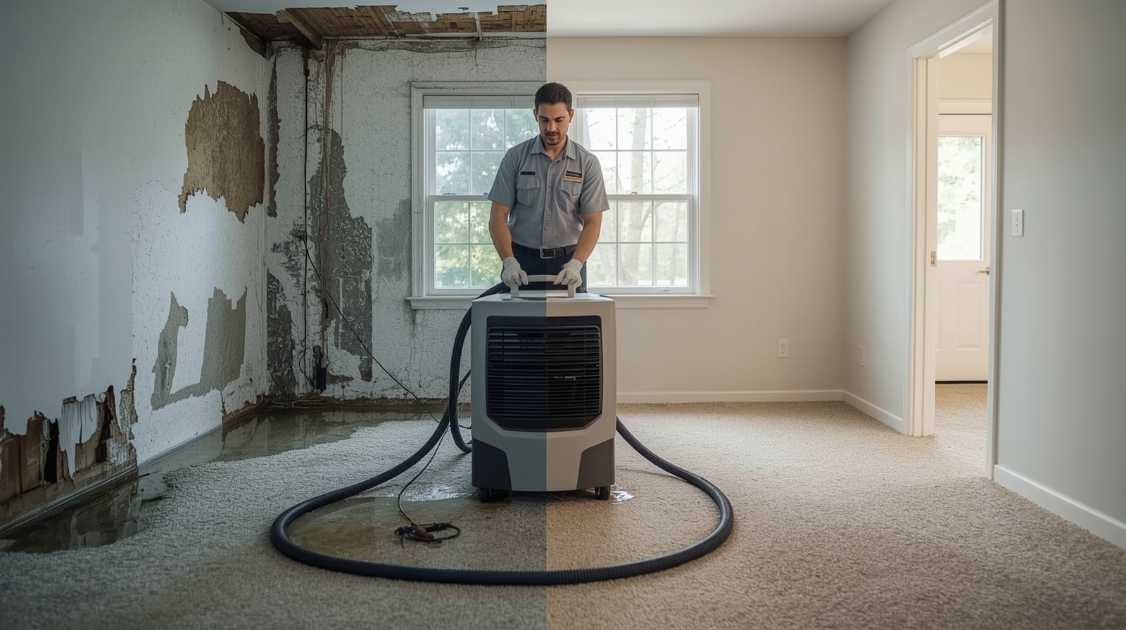 Обычно от 1 до 3 дней — зависит от площади и степени подтопления.